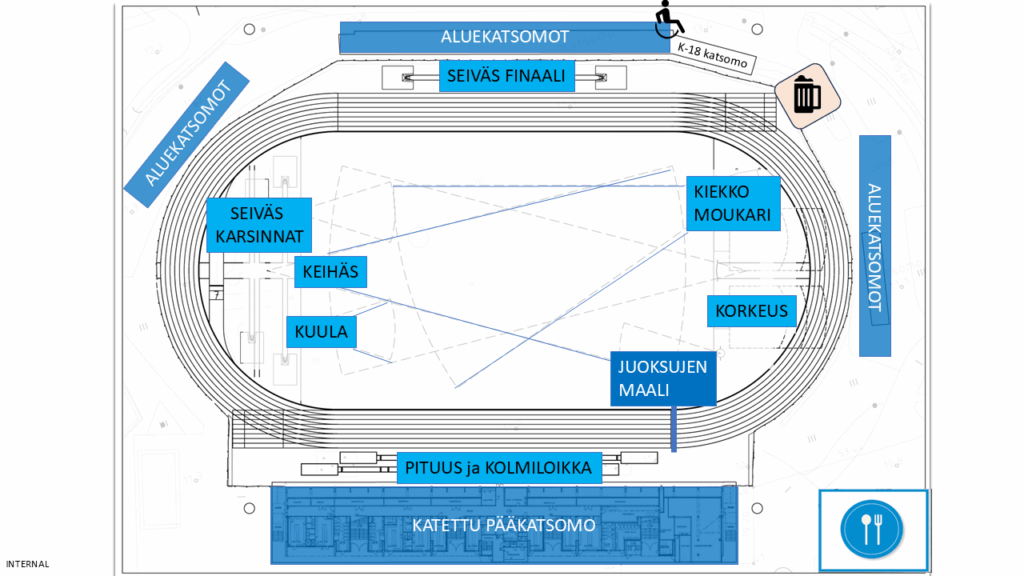 Katettu katsomo etusuoralla. Oikeudet päivittäiseen lajiohjelman muutoksiin pidätetään – aikataulun löydät täältä!